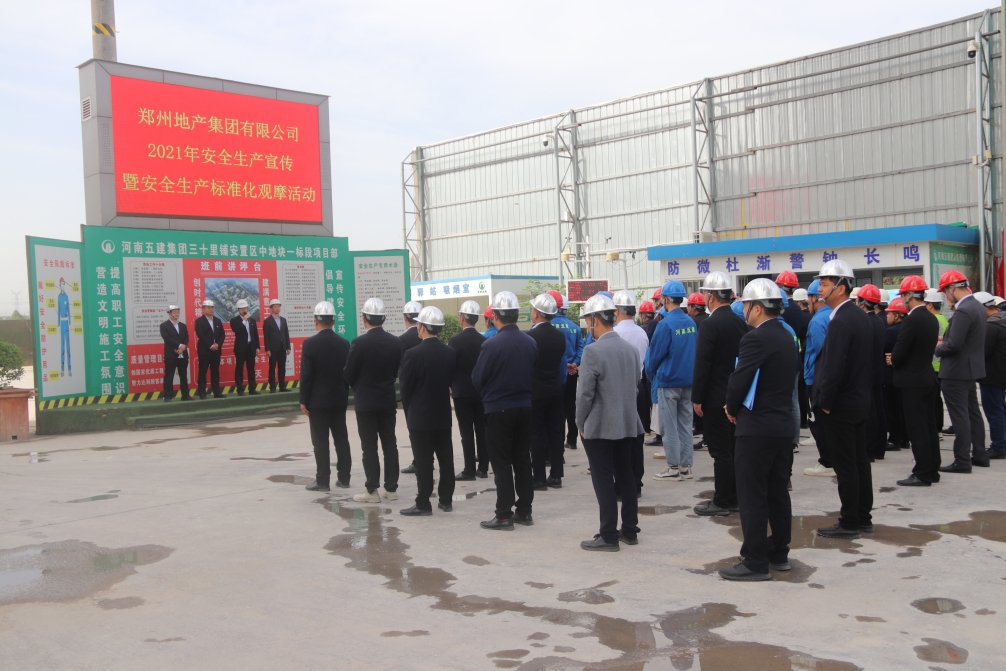為不斷加強(qiáng)集團(tuán)平安建設(shè)宣傳工作,提高安全生產(chǎn)工作管理水平,充分發(fā)揮示范引領(lǐng)作用,4月28日上午集團(tuán)公司工程管理部、辦公室共同組織在西流湖公司三十里鋪中項(xiàng)目開(kāi)展2021年平安建設(shè)宣傳月安全生產(chǎn)宣傳暨安全生產(chǎn)標(biāo)準(zhǔn)化觀摩活動(dòng),各子公司工程管理人員約40余人參加此次觀摩活動(dòng)。