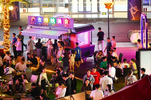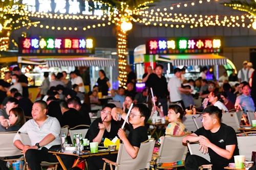 熠熠星光耀向夜空,呼應(yīng)著霓虹閃爍的奧體中心,飄散的煙火氣和美食的香氣充斥著整個(gè)下沉空間,舞臺(tái)音樂節(jié)奏歡快、火爆酷炫,在霓虹交錯(cuò)的空間里,一天的時(shí)間仿佛被夜市拉長(zhǎng),這是年輕人帶給這座城市的無(wú)限活力。
