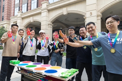 最后,集團(tuán)領(lǐng)導(dǎo)為各隊(duì)發(fā)放了紀(jì)念獎牌,大家接過獎牌,在手印墻按下了共同奮斗的印記,榮譽(yù)感和成就感溢于言表,“奮斗吧,城發(fā)人”的共識深深印刻在全員心中。