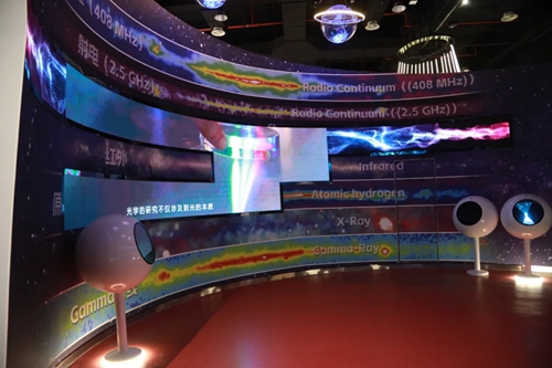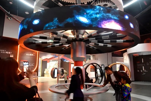 最夢幻的是“追光之旅”展廳。一進這個展廳,仿佛能沉浸式體驗星際穿越的樂趣。這里打破單純講解理論知識和科學(xué)現(xiàn)象的傳統(tǒng)模式,用講故事的方式串聯(lián)起相關(guān)展項,讓整個展廳形成一套完整的故事體系,生動還原了科學(xué)探索的過程。追光之旅的旅程是回答“光是什么?”的過程,在這個過程中我們通過“認(rèn)識光的傳播”“駕馭光的路徑”“探索光的本質(zhì)”“運用光的新知”四個分主題帶領(lǐng)觀眾了解光學(xué)的發(fā)展歷程。