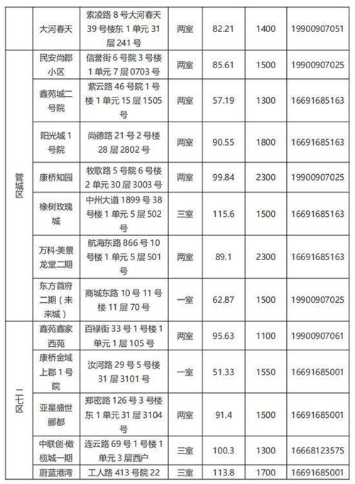 本批次配租房源共計(jì)32套,其中金水區(qū)12套、管城區(qū)7套、二七區(qū)8套、中原區(qū)1套、鄭東新區(qū)3套、惠濟(jì)區(qū)1套。水電費(fèi)均為民用水電標(biāo)準(zhǔn),物業(yè)費(fèi)為各小區(qū)物業(yè)收費(fèi)標(biāo)準(zhǔn),房源精裝修交付,周邊配套設(shè)施齊全,配備家具家電,拎包入住,后續(xù)房源將根據(jù)裝修進(jìn)度情況陸續(xù)配租。