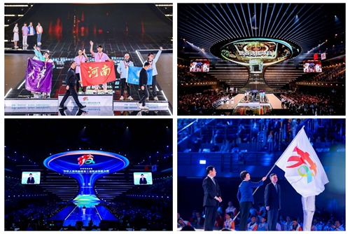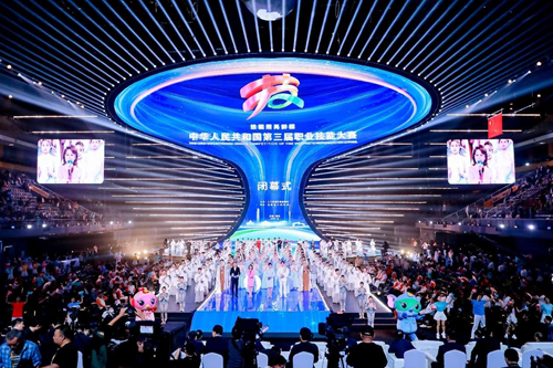華燈璀璨,掌聲如潮。9月23日晚,當348名獲獎選手高舉隊旗與獎章,當大賽會旗在璀璨的舞臺上完成交接傳遞,當良渚文化和人形機器人在現(xiàn)場8000余名觀眾的歡呼聲中共舞……中華人民共和國第三屆職業(yè)技能大賽閉幕式在鄭州奧體中心體育館完美落幕!