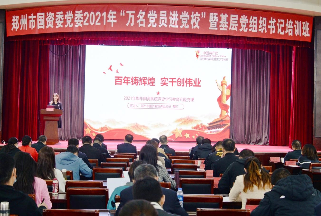 10月19日,鄭州市國資委黨委舉行2021年“萬名黨員進黨校”暨基層黨組織書記培訓活動,鄭州地產集團西流湖公司黨支部曹珂同志作為市國資委宣講團成員,向市國資委黨委市管企業(yè)優(yōu)秀黨支部書記、優(yōu)秀共產黨員130余人進行了以《百年鑄輝煌 實干創(chuàng)偉業(yè)》為主題的黨課宣講。
