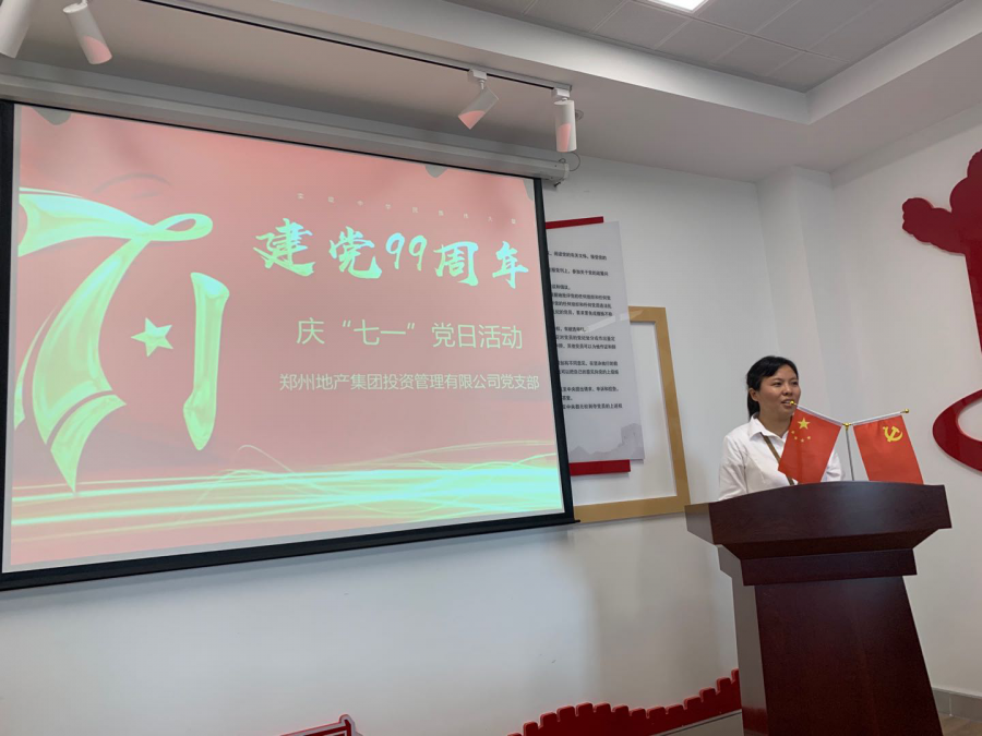 為熱烈慶祝建黨99周年,激發(fā)公司廣大黨員的責(zé)任感、榮譽感和使命感,鄭州地產(chǎn)集團(tuán)投資管理有限公司黨支部開展慶祝建黨99周年·“七一”黨日活動。在黨的生日這天,組織全體黨員重溫初心承諾、學(xué)習(xí)理解黨的文化內(nèi)涵、講述家風(fēng)傳承故事。